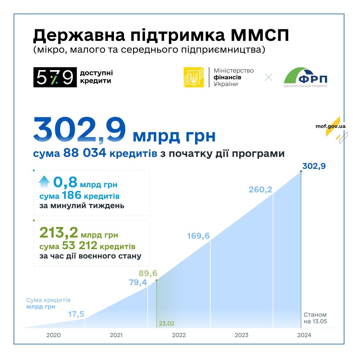 За Державною програмою «Доступні кредити 5-7-9%» ФРП уклав угоди про співробітництво з 45 банками. Держава продовжує здійснювати всі необхідні компенсаційні виплати на користь бізнесу за укладеними кредитними договорами у межах Програми.